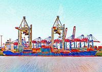 Koop dit digital art kunstwerk Containerschip in de haven van Leopold Brix als reproductie geprint op canvas, aluminium dibond, (ingelijste) fotoprint, behang en ArtFrame. Voor jou op maat geprint in Fine-Art kwaliteit.