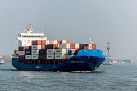 containerschip onderweg naar de zee bij Rotterdam.