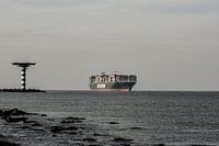 Koop de foto Containerschip op de Horizon. van scheepskijkerhavenfotografie op canvas, aluminium dibond, (ingelijste) fotoprint, behang en ArtFrame, op maat geprint in Fine-Art kwaliteit.