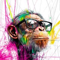 "Contemplation in Color" is een levendige en gedurfde illustratie van een aap, met een speelse maar introspectieve uitstraling. Het gebruik van felle kleuren en dynamische lijnen creëert een krachtig visueel contrast tegen de minimalistische achtergrond, wat de figuur tot het centrum van de compositie maakt. De aap, met een rustige blik…