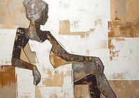 Details: vrouw, figuur, abstract, geometrisch, contemplatief, modern, bruin,…