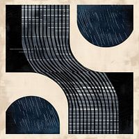 Dit werk toont een harmonieus contrast tussen donkere, dynamische strepen en de rustgevende achtergrond van natuurlijk beige. Het zou een goede toevoeging zijn aan een industrieel of hedendaags interieur.