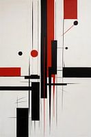 Deze moderne kunstcreatie brengt de essentie van minimalisme in huis met zijn strakke lijnen en krachtige kleurgebruik. Het spel van rood, zwart en wit vormt een gedurfd contrast dat de kijker uitnodigt tot contemplatie en interpretatie. Zijn abstracte aard maakt het een veelzijdige aanwinst voor elke ruimte, terwijl het de hedendaagse smaak voor gestroomlijnd design belichaamt. Perfect voor de liefhebber van moderne esthetiek, het stuk biedt een tijdloze allure die niet aan trends onderhevig is.