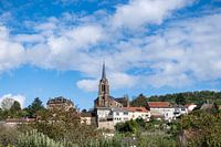 Contz-les-Bains FranceThe spire of Église Saint-Jean-Baptiste church rises out of the village.