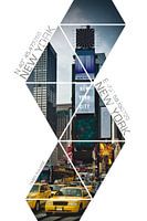 Times Square is wereldberoemd en vormt het centrum van de theaterwijk Broadway in Manhattan. Een klassiek stedelijk straatbeeld uit New York City in geometrische vorm met coördinaten.