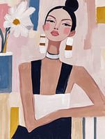 Deze dame ziet er misschien kalm en onbewogen uit, maar met die strakke blik en die enorme oorbellen lijkt ze vooral te zeggen: "Ik ben stijlvol, en nee, ik doe hier geen moeite voor." Het bloemmotief op de achtergrond voegt net genoeg zachtheid toe om te laten zien dat ze toch een klein beetje gevoelig is. Een moderne powervrouw, met…