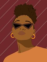 Digitale illustratie van portret vrouw met zonnebril. Warme kleuren die passen bij de trend van het jaar.