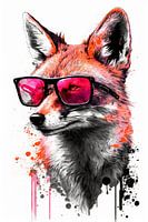 Coole vos met roze zonnebril en waterverf van Poster Art Shop