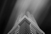 Zeker steil omhoog kijkend heeft het gebouw een hele strakke en abstracte look, iets dat ik door het gebruik van een…