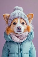 Met een stralende lach en een vleugje stijl zal deze corgi harten veroveren. Zijn grote, nieuwsgierige ogen glinsteren van onder zijn gezellige muts, terwijl zijn pluizige nekband een behaaglijk gevoel geeft. In een winteroutfit is hij de perfecte metgezel voor avonturen en een warme glimlach in elk koud seizoen.