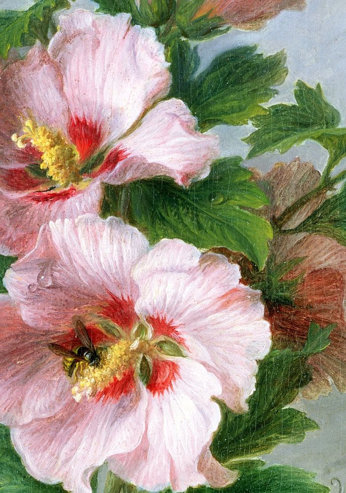 Cornelis van Spaendonck,Hibiscus tegen een marmeren ledge
