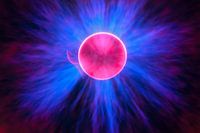 De corona van een plasmabol die ik 30 seconden lang fotografeerde. Ik wilde en verwachtte ook dit te krijgen. De bliksems van de plasmabol gingen elkaar overlappen en creëerden zo een blauwe corona om een zon. Er is zelfs iets wat lijkt op een protuberans te zien. Normaal is de zon tijdens een verduistering afgedekt door de maan, of…