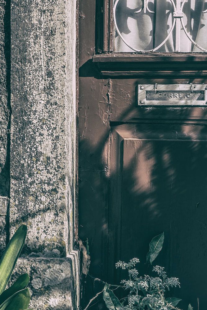 Straatbeeld uit het pittoreske Sintra in Portugal , Een leuk detail is het opschrift Correio op de brievenbus ( wat Portugees is voor post )