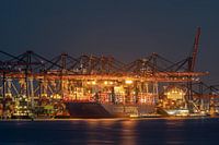 Het grote containerschip Cosco Shipping Azalea in de haven van Rotterdam (Maasvlakte).
