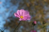 Als je op zoek bent naar een eenvoudig beeld waar kleur inzit, kies dan voor deze Cosmea met herfstkleuren op de achtergrond!