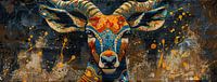 Cosmic Antler Aurora - kleurrijk abstract hert schilderij