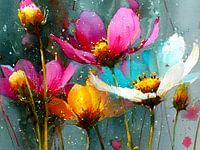 Koop dit bloemen kunstwerk Cosmosbloemen in levendige aquarel van Frank Heinz op canvas, aluminium dibond, (ingelijste) fotoprint, behang en ArtFrame, op maat geprint in Fine-Art kwaliteit.