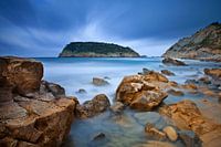 Een baai aan de Costa Blanca nabij Javéa met rustieke stenen en rotsen, 900 m lang, ideaal voor watersporten, zoals duiken en snorkelen vanwege zijn heldere water, gelegen in een omgeving van hoge botanische en archeologische waarde.