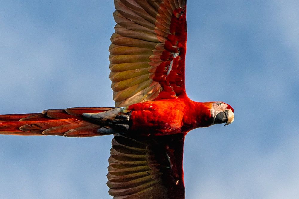 Deze betoverende foto vangt de majestueuze ara's in Costa Rica, gehuld in een opvallende combinatie van rood en blauw. Hun verenpracht straalt een vurige pracht uit, en de dynamiek tussen de kleuren brengt de weelderige natuur van Costa Rica tot leven.