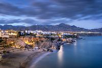 Kust bij de stad Nerja aan de Costa del Sol in Andalusië in Spanje in de avond.