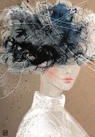 Portret schilderij met hoofd in de wolken. Gezicht gedeeltelijk verborgen.