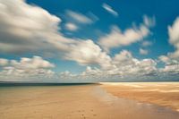 Een zomerse dag op het meest westelijke puntje van Terschelling.; de Noordsvaarder. Met een lange sluitertijd gefotografeerd om de wolken wat vaart mee te geven en de doorzicht van het water in de voorgrond sterker te maken.