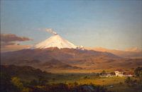 Frederic Church was een ambitieuze schilder en enthousiast amateurwetenschapper. Hij had de boeken van Darwin' gelezen en Alexander von Humboldt's beschrijvingen van Cotopaxi, "de vreselijkste vulkaan... de meest frequente en rampzalige explosies."De legendarische Ecuadoraanse berg was zowel een poëtisch symbool van God's schepping als een opwindend venster op de natuurgeschiedenis van de planeet'en. Geologie was een nieuwe wetenschap in de negentiende eeuw en Church behoorde tot degenen die geloofden dat vulkanen aanwijzingen gaven over de ouderdom en oorsprong van de aarde. Bij zijn eerste bezoek aan Ecuador wachtte de kunstenaar een hele dag in de buurt van de hier afgebeelde hacienda, in de hoop dat de wolken zouden verdwijnen om de top te onthullen. Amerikaanse critici klaagden dat Church's schilderijen van de vulkaan niet de zachte atmosferische waas weergaven die ze gewend waren te zien in landschappen. Zij die nog nooit in het hoogland van de Andes waren geweest, begrepen niet dat in de ijle, heldere lucht de ijzige flanken van Cotopaxi'precies zo glommen als Church ze had geschilderd.