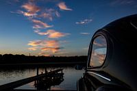 Terwijl de zon ondergaat op een van de laatste warme zomeravonden verschijnen er prachtige roze wolken aan de lucht. De weerspiegeling van de wolken in de ramen van mijn Volkswagen Kever maken deze foto af.