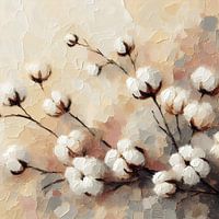Ontdek de serene schoonheid van een olieverfwerk in zachte beige en roze tinten, waar delicate katoenplanten subtiel tot leven komen. Dit werk straalt rust en elegantie uit, perfect om een kalme sfeer in elke ruimte te creëren. Voeg een vleugje natuurlijke verfijning toe aan je interieur met deze verfijnde compositie. Een tijdloos stuk dat elke kamer een zachte, organische charme geeft.