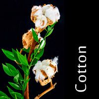 Ast einer Baumwollpflanze mit geöffneten Samenkapseln