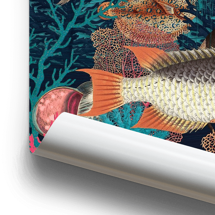 Een heerlijk zomers zee-tafereel met vissen, heel veel vissen. Het is bijna ondoenlijk om ze allemaal te tellen. Leuk voor in de kinderkamer, leuker dan schaapjes tellen.