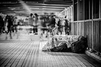 Een dakloze man in Mong Kok, Hong Kong. Vastgelegd met een lange sluitertijd.