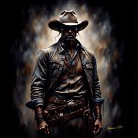 Een ruige cowboy komt tevoorschijn uit de schaduwen, zijn aanwezigheid is al voelbaar lang voordat zijn gelaatstrekken zichtbaar zijn. Een verweerde hoed zakt laag over zijn voorhoofd en een versleten leren jack kleeft aan hem als de geschiedenis die hij met zich meedraagt. Zijn gezichtsuitdrukking blijft verborgen, opgeslokt door de…