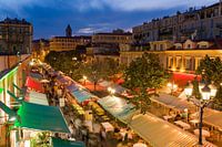 Restaurants in Cours Saleya in de oude stad van Nice in de avond, Cote d'Azur, Frankrijk.