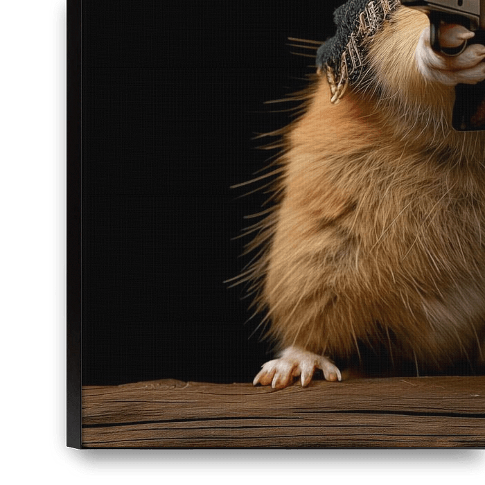 Cowboy hamster met revolver schilderij die een prachtige luxe toevoeging zal zijn in elke ruimte. Met zijn unieke en stijlvolle uitstraling is het een ware eyecatcher. De schitterende kleuren en het bijzondere ontwerp maken dit kunstwerk 100% uniek en origineel. Het is de perfecte fotoprint om je interieur helemaal af te maken.