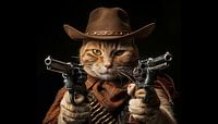 Cowboy kat met 2 pistolen panorama schilderij die een prachtige luxe toevoeging zal zijn in elke ruimte. Met zijn unieke en stijlvolle uitstraling is het een ware eyecatcher. De schitterende kleuren en het bijzondere ontwerp maken dit kunstwerk 100% uniek en origineel. Het is de perfecte fotoprint om je interieur helemaal af te maken.