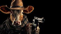 Koop dit koeien kunstwerk Cowboy koe met pistool panorama van TheXclusive Art als print op canvas, aluminium dibond, (ingelijste) fotoprint, behang en ArtFrame. Voor jou op maat geprint in Fine-Art kwaliteit.