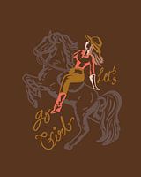 Koop de illustratie Cowgirl die een steigerend paard berijdt van Nikita Jariwala op canvas, aluminium dibond, (ingelijste) fotoprint, behang en ArtFrame, op maat geprint in Fine-Art kwaliteit.