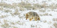In Yellowstone zie je regelmatig een coyote ploegen door de sneeuw. Op zoek naar muizen en andere kleine dieren. In combinatie met de natuurlijke vegetatie zijn ze soms moeilijk waar te nemen vanwege de kleur.
