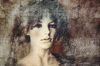 Dit portret is bewust gemaakt met barsten. Het lijkt geschilderd, maar het kunstwerk is opgebouwd uit verschillende eigen foto's. De vrouw is een door mij gefotografeerde paspop die ik vermenselijkt heb. Voor mij is het een moderne Mona Lisa met een ondoorgrondelijke blik. Het portret is in landschapstand gemaakt.