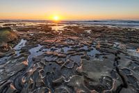 Ingewikkelde rifpatronen tijdens een zonsondergang aan de kust. Gefotografeerd bij Hospital's Reef in La Jolla, Californië, VS.