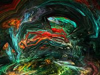 Fractal ontwerp met vier driehoeken en de nodige 3d plug-ins om dit fantasierijke beeld te creëren. Postprocessing in Photoshop CC