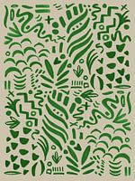 Dit beige kunstwerk is opgebouwd uit met de hand getekende abstracte scribble lijnen in groen. En deze zijn vervolgens digitaal vervaardigd. Een modern en toch ook vrolijk beeld. Door de vele kleurstellingen leent dit artwork zich goed om te combineren met andere objecten uit mijn collectie.