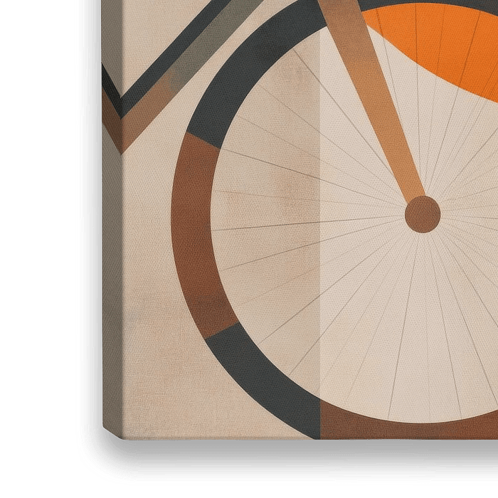 Een harmonieus samenspel van geometrische vormen en warme aardse kleuren trekt de aandacht. De gestileerde fietsstructuur contrasteert levendig met de zachte, ronde en hoekige elementen op de achtergrond. Deze compositie straalt een gevoel van beweging en vrijheid uit, terwijl het spel van licht en schaduw de dynamiek van het dagelijks…