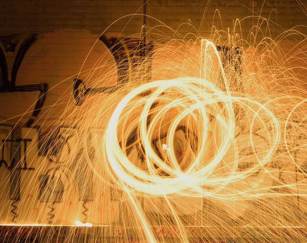 Creatief lichtschilderen met staalwol in Jena, 's nachts, lange sluitertijd