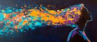 Een fascinerend samenspel van levendige kleuren ontvouwt zich en symboliseert de uitdrukking van creativiteit en de stroom van ideeën. De explosie-achtige beweging straalt vrijheid en inspiratie uit, ideaal voor gebruik in een creatief kantoor of een inspirerende studio. Hier komt elk idee tot leven en wordt creativiteit gestimuleerd.