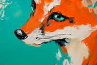 Fel oranje en stralend blauw - een boeiend portret van een scherpzinnige vos wiens levendige ogen nieuwsgierigheid opwekken. De dynamische penseelstreken geven het schilderij een vleugje energie en levendigheid, perfect voor een moderne woonkamer of creatief kantoor waar het inspiratie en levensvreugde kan uitstralen.