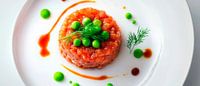 Creatieve zalmtartaar op een elegant bord van Poster Art Shop