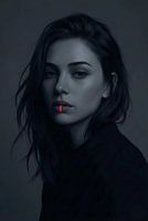'Crimson Silence' is een sfeervol portret dat de perfecte balans zoekt tussen klassieke melancholie en futuristische esthetiek ('Cyberpunk Noir'). De compositie is rustig: de vrouw kijkt weg, verzonken in gedachten, wat een gevoel van mysterie…