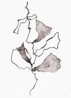 De abstracte intuïtief getekende lijnen en bladfiguren geven mij de indruk van planten die bewegen in de wind, de vormen lijken te knisperen.